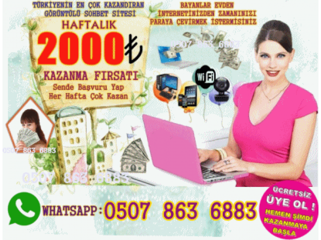 GÖRÜNTÜLÜ SOHBET SİTELERİNDE PARA KAZANMAİnternet - Çukurova (Adana) - 28/11/2018 8000.00 ₺BAYAN ÖĞRENCİLER EV HANIMLARI EVDEN ZAMANINI PARAYA ÇEVİRMEK İSTEYEN BÜTÜN BAYANLAR SOHBET SAATİ 30 TL İNTERNETTEN YÜKSEK KAZANÇ HAFTALIK ÖDEME İŞ FIRSATI SİZLERİ BEKLİYOR. TÜRKİYE.NİN İLK VE TEK ÜYE POTANSİYELİ YÜKSEK KURUMSAL Sitesinde EVİNİZDEN SO...
