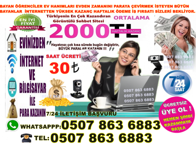 BAYANLAR EVİNİZİN RAHATLIĞINDA İNTERNET VE BİLGİSAYAR,DAN SOHBET SAATİ 30 TL ,den ZAMANINIZI PARAYA ÇEVİRMEK İSTERMİSİZ. PARA KAZANMAK İSTEYEN ÜNİVERSİTELİ BAYAN ÖĞRENCİLER – EVHANIMLARI – BAYANLAR HAFTALIK ÖDEME İŞ İMKANI....